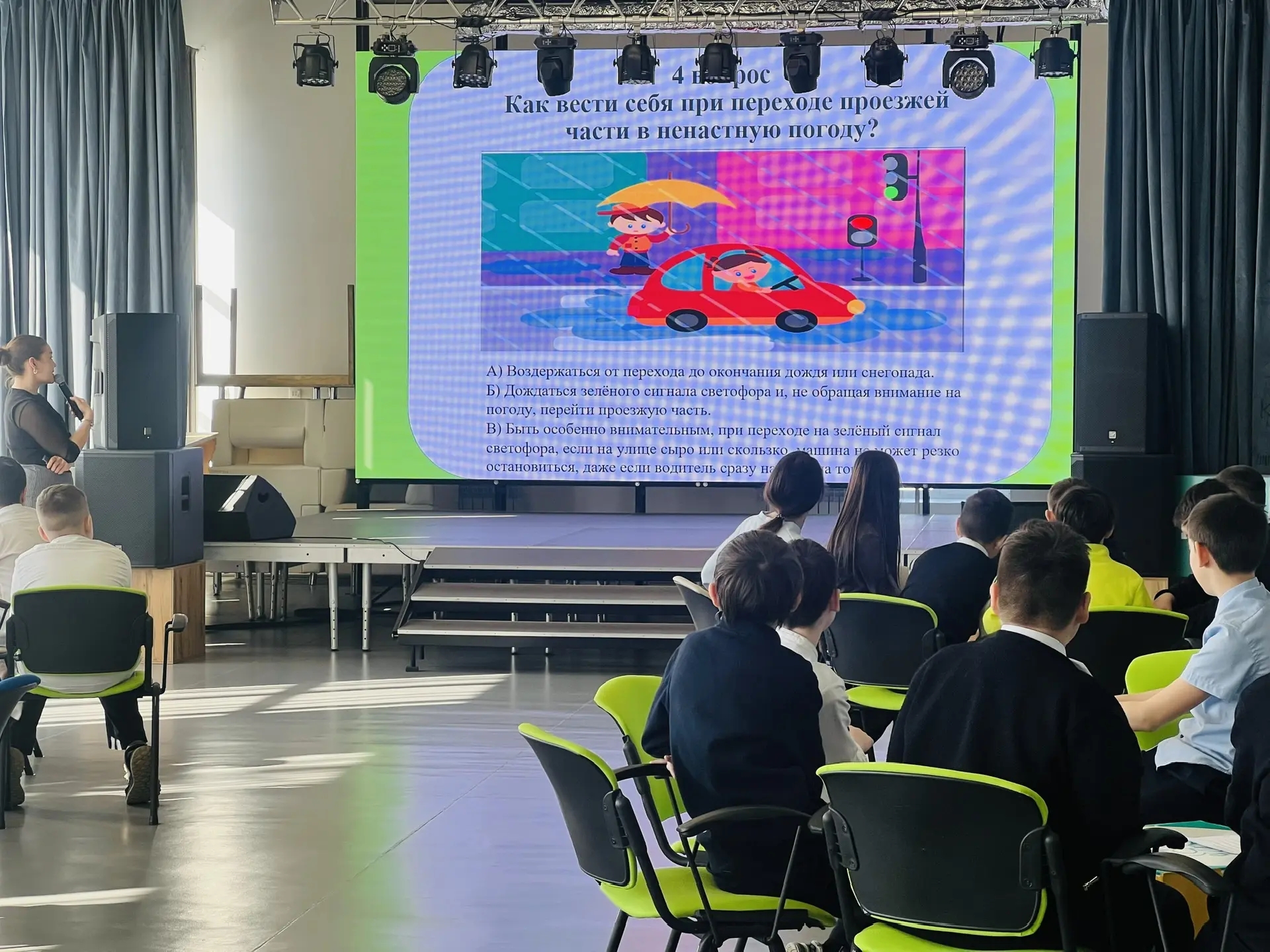 Завершилось мероприятие квиз-игрой под названием «Движение без опасности». Участники активно включились в игру, демонстрируя полученные знания и умения ориентироваться в сложных ситуациях на дороге.